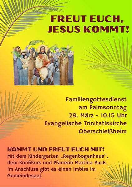 Maria, Pfarrerin Frowein: 4.1. 10:00 Uhr Laudatekirche Garching und 25.1. 10:15 Uhr Trinitatiskirche Oberschleißheim