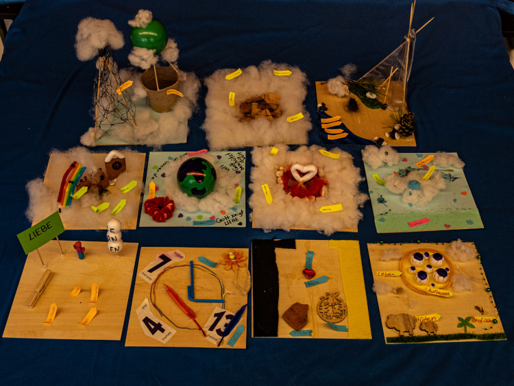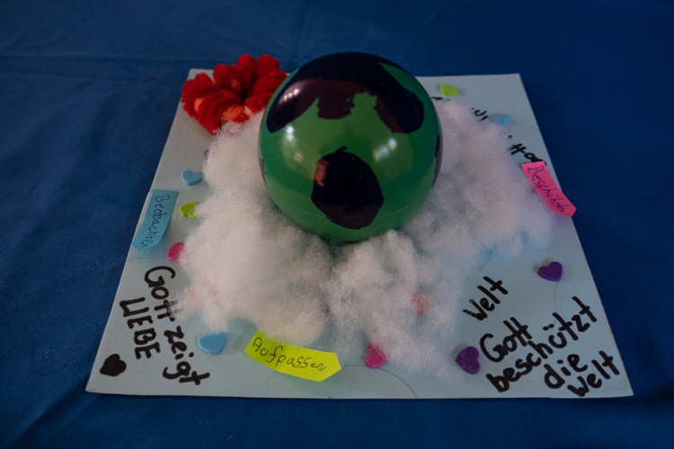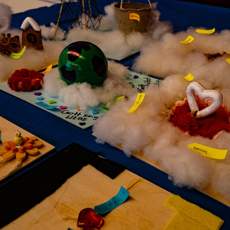 Mit solchen Fragen beschäftigten wir uns im letzten Konfikurs. Die Konfirmand*innen haben überlegt, was ihnen wichtig ist, sie haben in der Bibel nachgelesen, welche Bilder da vorkommen. Und sie haben jeweils eine Fliese gestaltet mit ihrem Bild von Gott. Gott schützt die ganze Welt, Gott begleitet durch die Zeit, Gott gibt Freiraum und Schutz zugleich, Gott ist Liebe, Gott lehrt die Liebe, das sind nur einige Aussagen dazu.